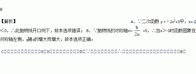 关于二次函数y =﹣2x2+3,下列说法中正确的是( ).