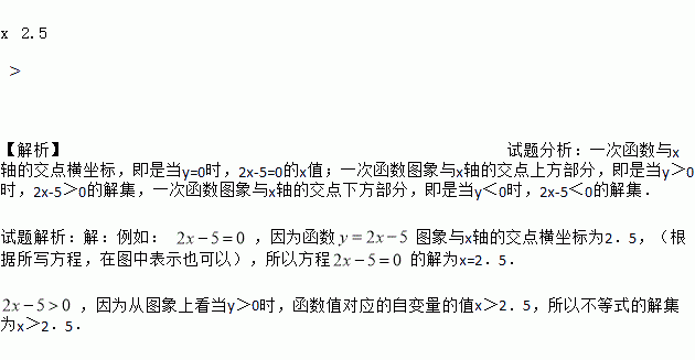 如图是一次函数y=2x﹣5的图象,请根据给出的图象写出一个一元一次方程和一个一元一次不等式,并用图象求解所写出的方程和不等式.