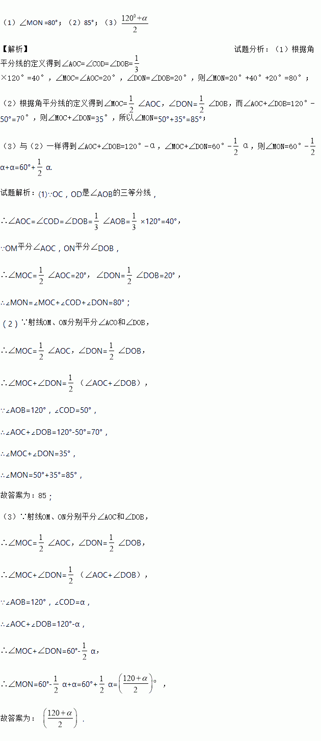 已知∠AOB=120°,OC、OD过点O的射线,射线OM、ON分别平分∠AOC和∠DOB.