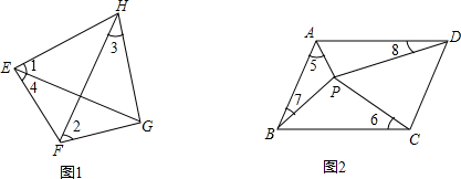 点评:本题考查了全等三角形的判定与性质、平行四边形的性质.解得此题的关键点是根据图1中的结论,由∠9=∠11得出∠10=∠12的结论.