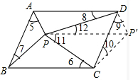 ∴∠6=∠11,∠8=∠12(两直线平行,内错角相等),四边形APP′D和四边形BCP′P是平行四边形(对边平行且相等的四边形是平行四边形),