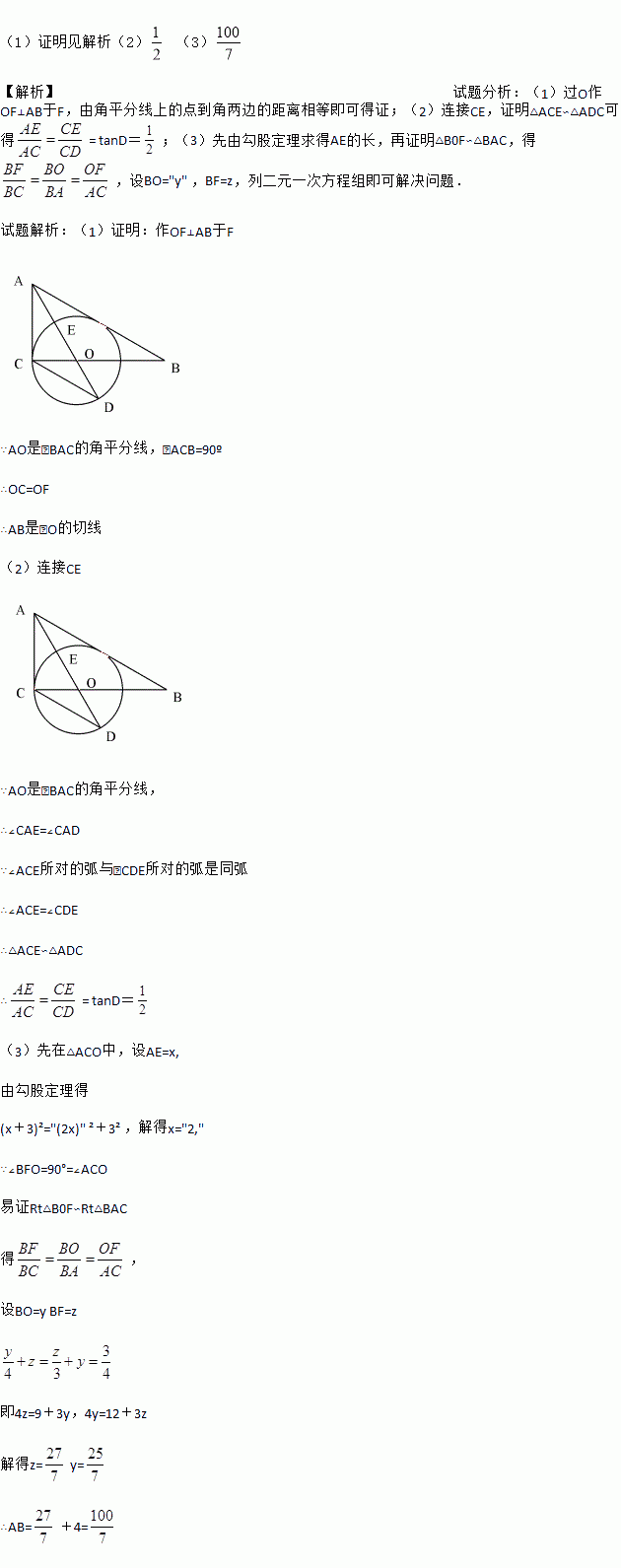 (3)在(2)的条件下,设⊙O的半径为3,求AB的长.
