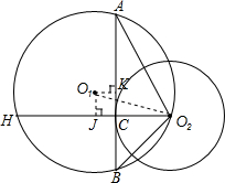解:如图所示:连接O2C,并延长交⊙O1于点H,作O1J⊥O2H于点J,O1K⊥AB于点K,