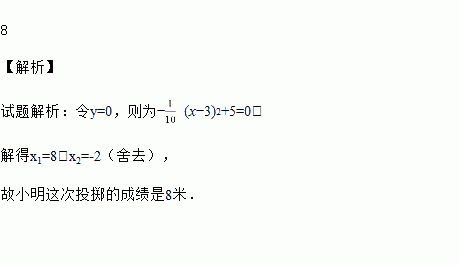校运动会小明参加铅球比赛,若某次投掷,铅球飞行的高度y(米)与水平距离x(米)之间的函数关系式为,那么小明这次投掷的成绩是____米.