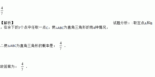 如图,在2×2的正方形网格中有9个格点,已知取定点A和B,在余下的7个点中任取一点C,使△ABC为直角三角形的概率是_____.
