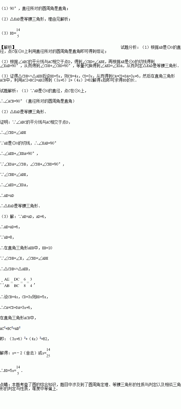 如图,AB是⊙O的直径,点C在⊙O上,∠ABC的平分线与AC相交于点D,与⊙O过点A的切线相交于点E.