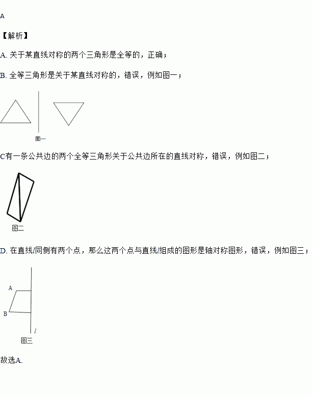 D. 在直线l同侧有两个点,那么这两个点与直线l组成的图形是轴对称图形