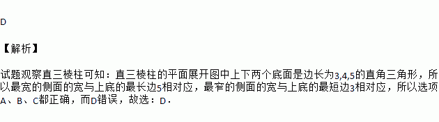 如图是一个直三棱柱,则它的平面展开图中,错误的是( )