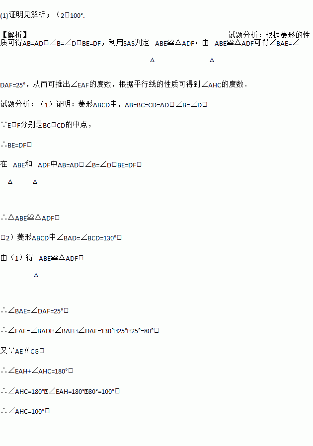 (2)过点C作CG∥EA交AF于H,交AD于G,若∠BAE=25°,∠BCD=130°,求∠AHC的度数.
