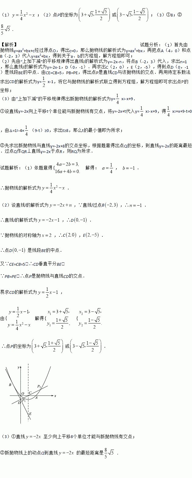 沿y轴向下平移n个单位后得到直线l,若直线l经过B点,与y轴交于点D,且与抛物线的对称轴交于点E.若P是抛物线上一点,且PB=PE,求点P的坐标;