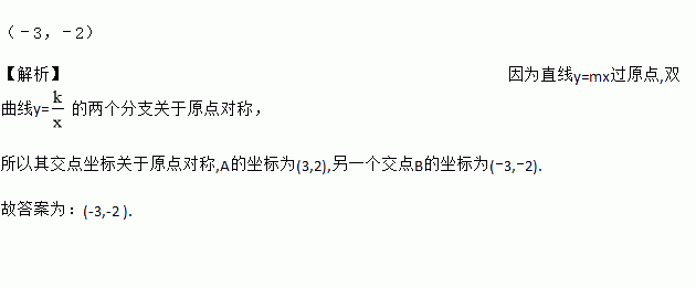 如果直线y=mx与双曲线y=的一个交点A的坐标为(3,2),则它们的另一个交点B的坐标为_____.