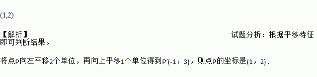 将点P向左平移2个单位,再向上平移1个单位,得到P′(-1,3),则点P的坐标是_____.