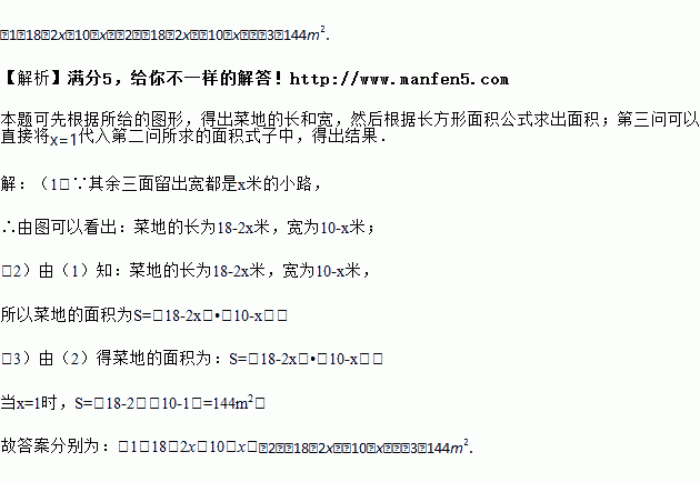 如图,池塘边有一块长为18米,宽为10米的长方形土地,现在将其中三面留出宽都是x米的小路,中间余下的长方形部分做菜地.