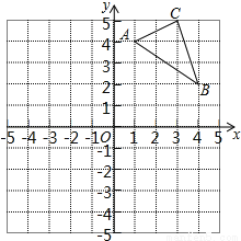 如图,在平面直角坐标系中,△ABC的三个顶点坐标分别为A(1,4),B(4,2),C(3,5)(每个方格的边长均为1个单位长度).