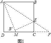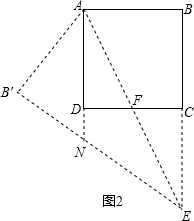 (2)①如图1.当点E在BC上时,延长AB′交DC于点M.
