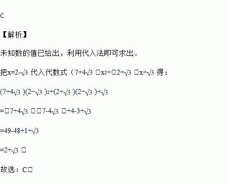 已知x=,则代数式(7+4)x2+(2+)x+的值是( )