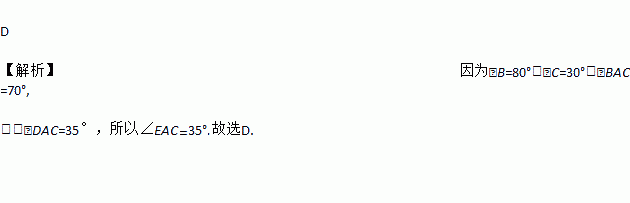 如图,△ABC≌△ADE,∠B=80°,∠C=30°,∠DAC=35°,则∠EAC的度数为( )