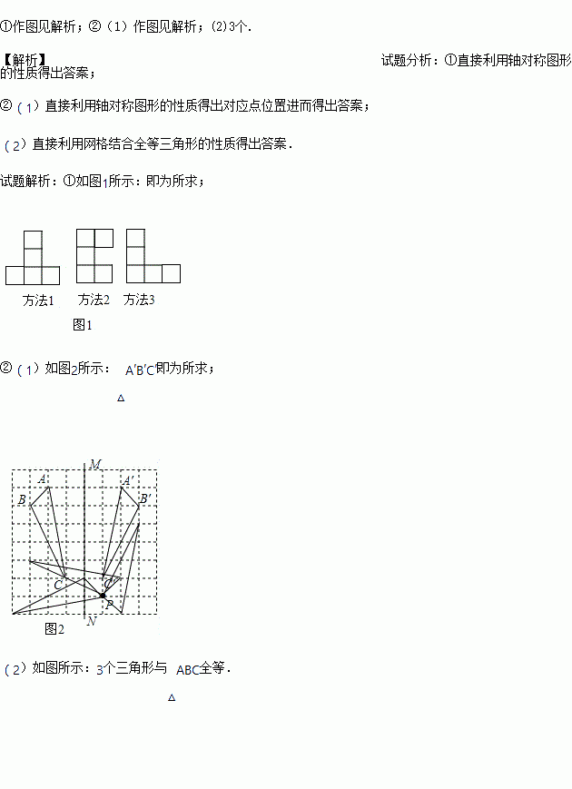 ① 如图,由小正方形组成的L形图中,用三种方法分别在图中添一个小正方形使图形成为轴对称图形: