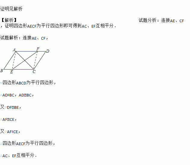 已知:如图,在?ABCD中,点E、F分别在BC、AD上,且BE=DF