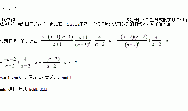 先化简,再求值: ,并从-1,0,2中选一个合适的数作为a的值代入求值.