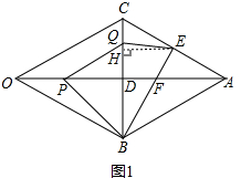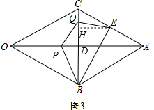 当PQ∥BE时,如图3,∵菱形ABOC的对角线OA、BC交于点D,∠BOC=60°,