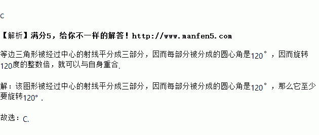 将一个等边三角形绕着它的中心旋转一个角度后与原来的图形完全重合,那么这个角度至少应为( )度.