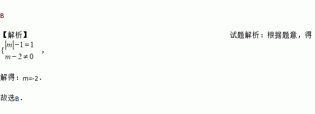B 【解析】试题解析:根据题意,得, 解得:m=-2. 故选B.