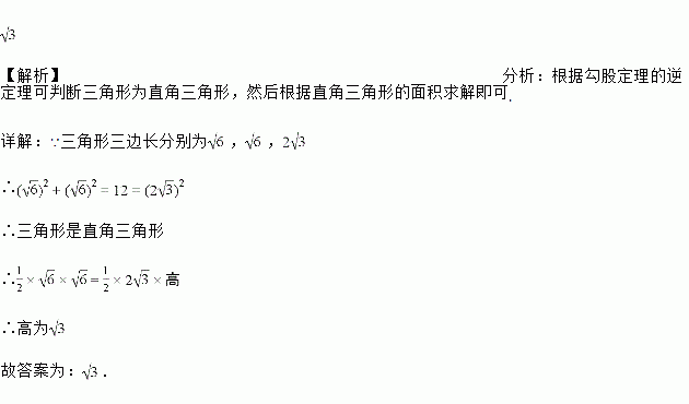 己知三角形三边长分别为,,,则此三角形的最大边上的高等于_____________.