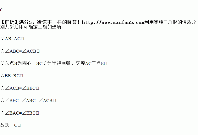如图,在△ABC中,AB=AC,若以点B为圆心,BC长为半径作弧,交AC于点E,则下列结论一定正确的是( )