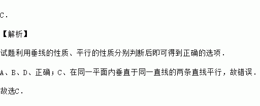 A.在同一平面内,过一点有而且只有一条直线与已知直线垂直