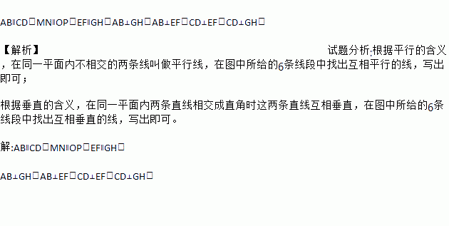 把图中的互相平行的线写出来,互相垂直的线写出来: