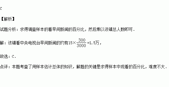 (2014•青岛)在一个有15万人的小镇,随机调查了3000人,其中有300人看中央电视台的早间新闻.据此,估计该镇看中央电视台早间新闻的约有( )