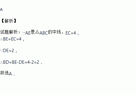 如图,AE是的中线,已知,,则BD的长为