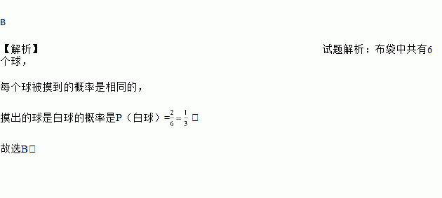 布袋中装有1个红球,2个白球,3个黑球,它们除颜色外完全相同,从袋中任意摸出一个球,摸出的球是白球的概率是( )