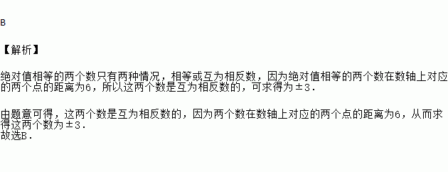 若绝对值相等的两个数在数轴上的对应点的距离为6,则这两个数为( )