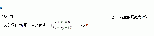 某次中学生足球联赛共8轮(即每队均赛8场),胜一场得3分,平一场得1分,负一场得0分,在这次足球联赛中,猛虎队踢平的场数是所负场数的2倍,共得17分.若设该队胜x场,负y场,则列出的方程组为( )