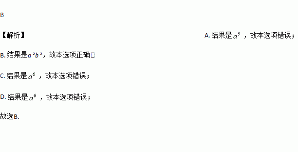 A. a2·a3=a6 B. (ab)2=a2b 2 C. (a3)2=a5 D. a8÷a2=a4