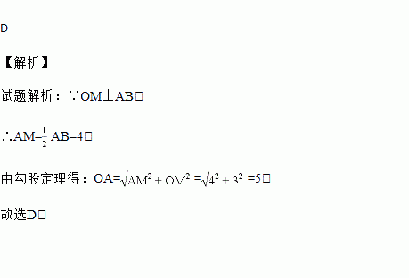 如图,⊙O的弦AB=8,M是AB的中点,且OM=3,则⊙O的半径等于( )