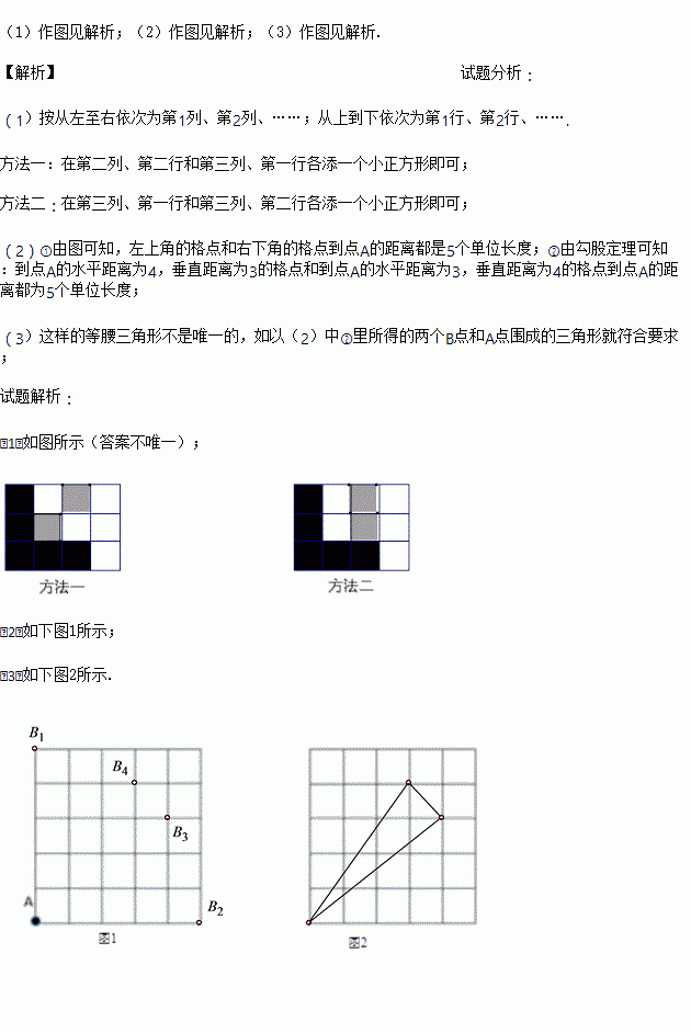(2)在图1的网格中找出所有能使AB的长度为5的格点B.