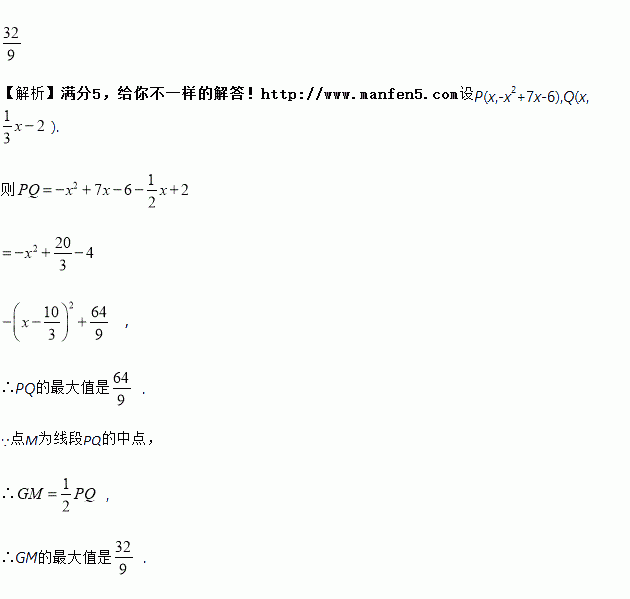相交于点B、C,点P为直线BC上方的抛物线上的一动点, PQ⊥x轴交BC于点Q,PG⊥BC于点G,点M为线段PQ的中点,则线段GM的最大值为_________.