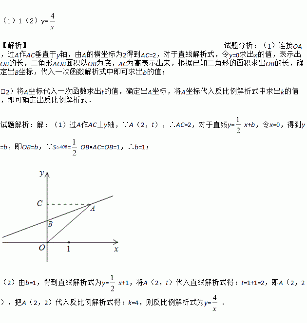 x+b上,连结AO,△AOB的面积等于1.