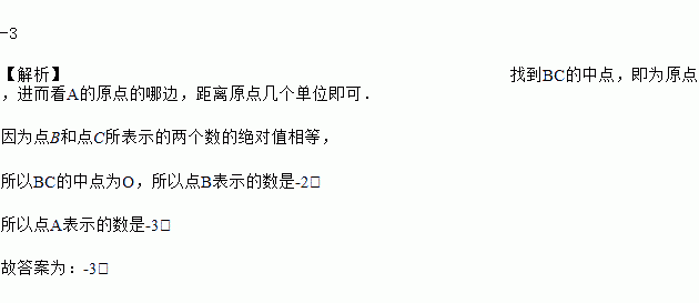 如图,数轴的单位长度为1,若点B和点C所表示的两个数的绝对值相等,则点A表示的数是________.