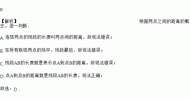 D. 点A到点B的距离就是线段AB的长度