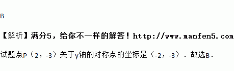 点P(2,﹣3)关于y轴的对称点的坐标是( )