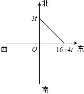 分析:设两人相距39m时的时间为ts,则由甲自西向东以4m/s的速度行进,乙由南向北以3m/s的速度行进,得出甲前进了4tm,乙前进了3tm,在图上找到各自的位置,利用时间t表示出各自的路程,利用勾股定理,列出一元二次方程得出t的值,进而可以得出答案.