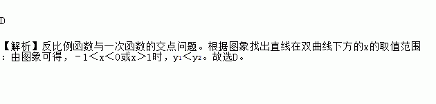 的图象交于A(﹣1,2)、B(1,﹣2)两点,若y1<y2,则x的取值范围是【 】
