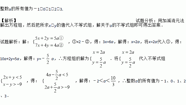 若关于x、y的二元一次方程组的解满足不等式组求出整数a的所有值.