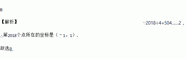 B 【解析】∵2018÷4=504……2, ∴第2018个点所在的坐标是(﹣1,1). 故选B.