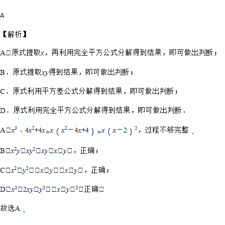 A. x3-4x2+4x=x(x2-4x+4) B. x2y-xy2=xy(x-y)