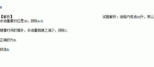汽车开始行驶时,油箱中有油30升,如果每小时耗油5升,则表示油箱内的剩油量Q与行驶时间t小时的关系正确的是( )